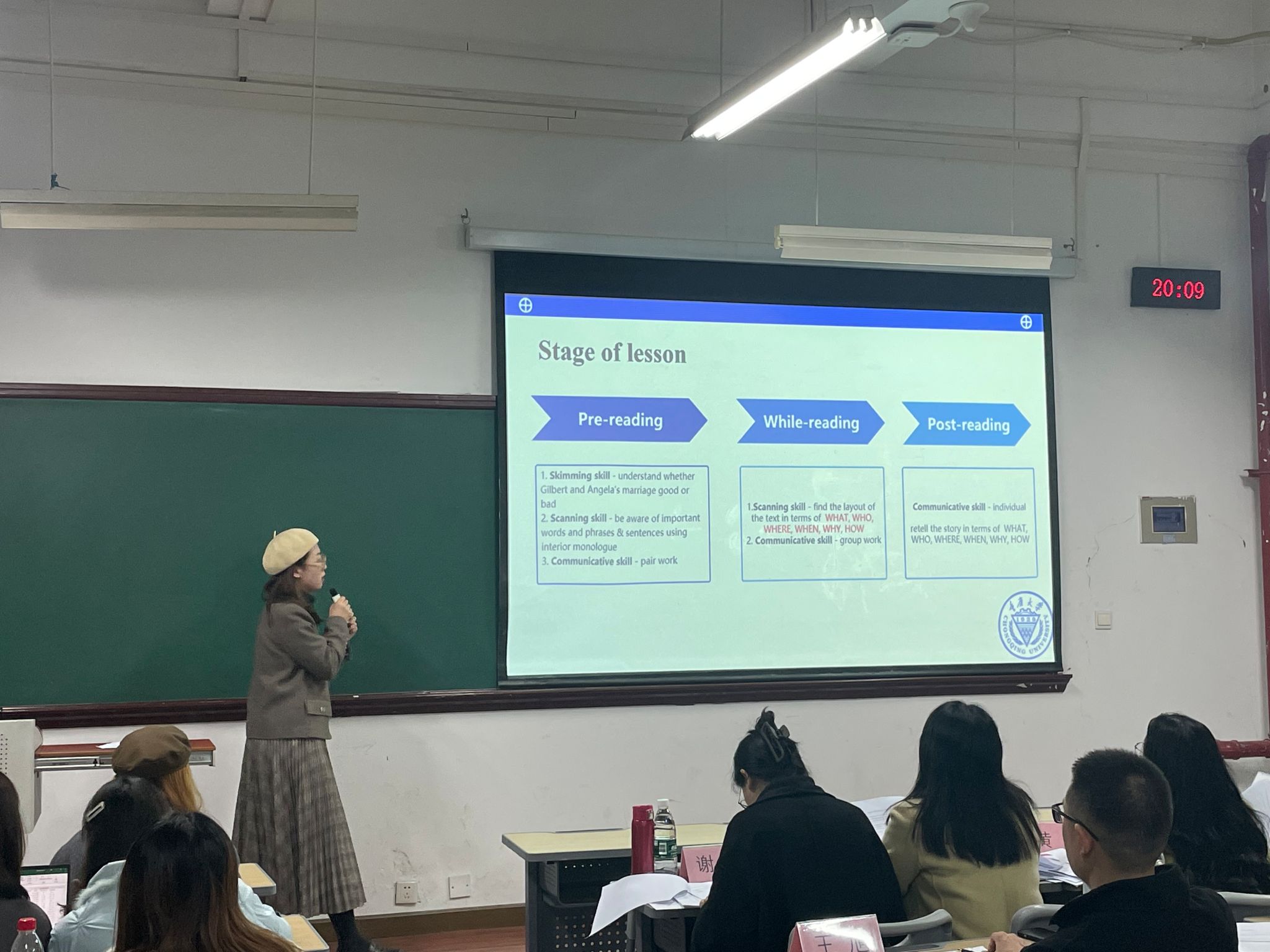 五位评委老师根据每位选手的教案和说课表现进行认真评分,经过激烈角逐,丁梦梦、李鸿宇、闫超双、刘晓玉、李怡、陈珺颖、张馨妮、张新伟、梅婷婷、龙长佳十位同学成功晋级,并将进入重庆市高校第十六届研究生英语教学技能大赛漫蛙