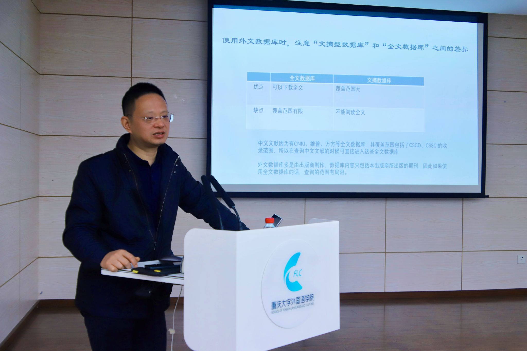 图书馆的基础服务,包括通借通还、文献传递与馆际互借、京东购书服务等功能,重点讲解了图书馆近期新推出的外文文献单篇订购服务,这一服务为经常需要下载外文期刊论文的外院学子提供了极大便利。