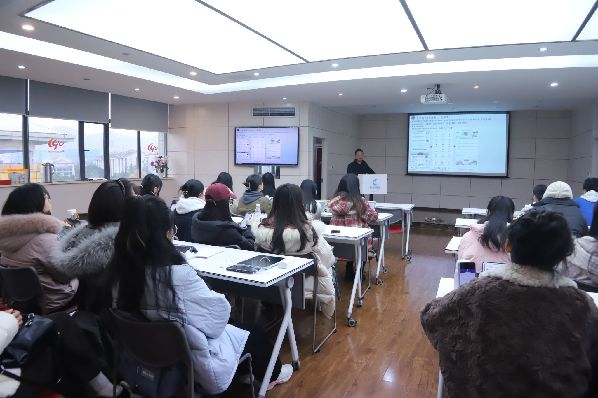 然后,袁辉为同学们介绍了图书馆电子资源数据库及其使用方法,指导同学们如何通过漫蛙
