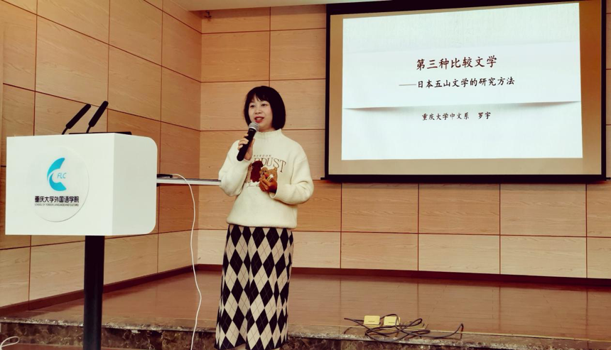 人文社会科学高等研究院罗宇老师,进行了题为“第三种比较文学——日本五山文学的研究方法”的学术讲座。主讲人罗宇老师主要从事东亚比较文学、唐宋文学研究,主持国家社科基金青年项目“苏轼对日本五山文学之影响研究”,在《外国文学评论》等期刊发表论文。本期研究生学术分享环节,由研二王琦和研一赵巧尧两位同学分别以“从‘训读’看古代汉语在日传播”和“音乐训练对日语单词声调感知的影响——基于对漫蛙