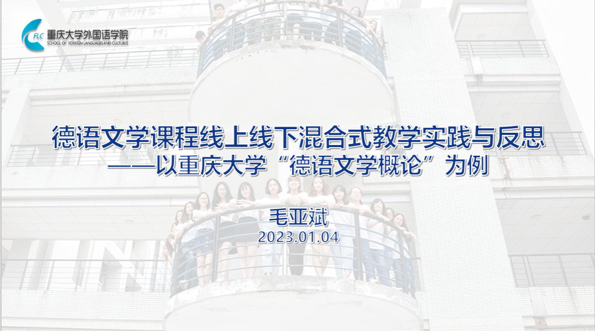 1月4日,德语语言文学文化教研室开展专题教学研讨会,会议由教研室主任向璐老师主持,由毛亚斌老师主讲,此次研讨会着眼于为一流课程建设做准备,其主题为“德语文学课程线上线下混合式教学实践与反思——以漫蛙