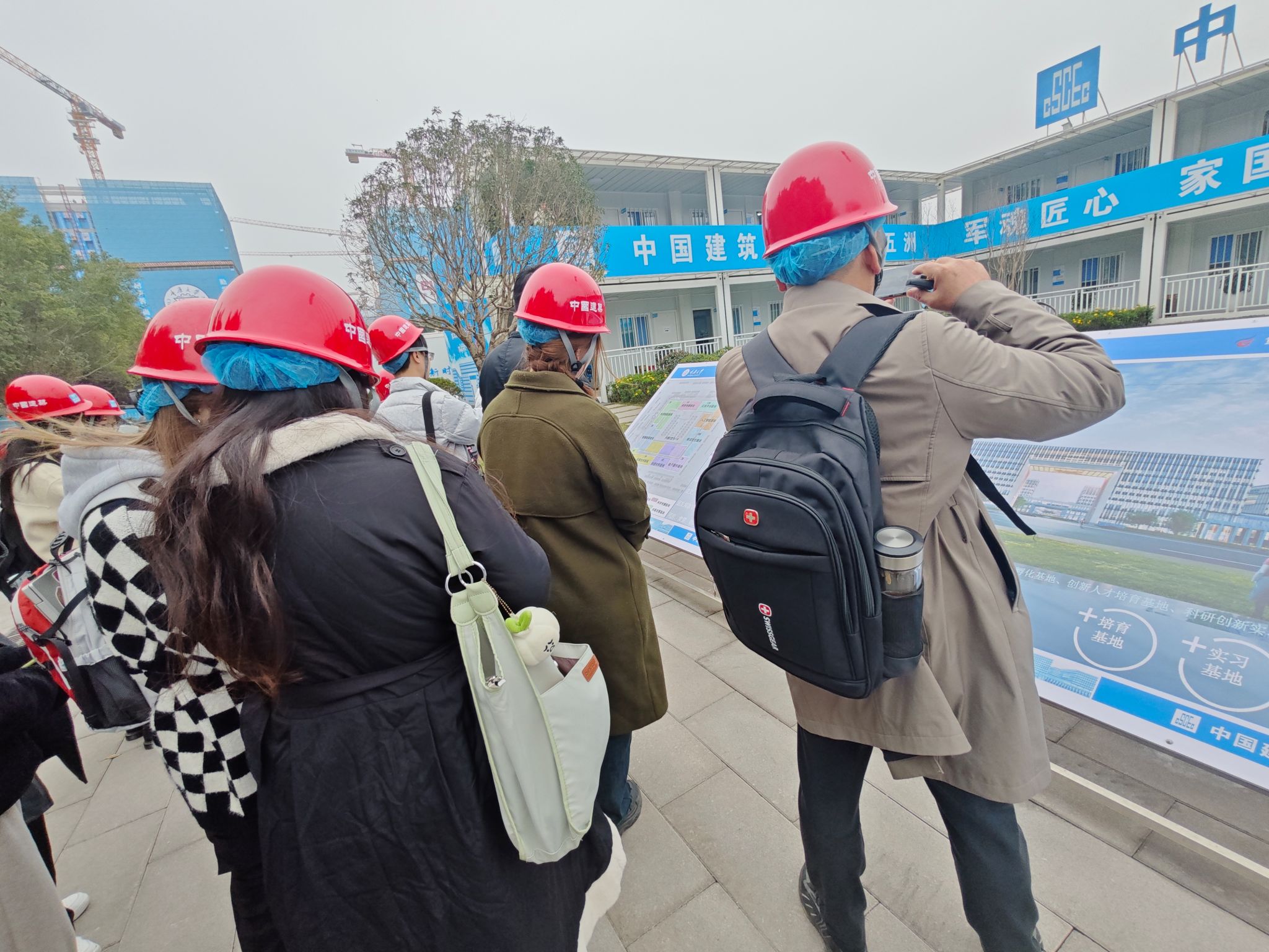开展安全教育后,承包方中建八局的工程师向同学们介绍了科学中心的设计理念与结构特点,以及现代建筑技术。通过工程师细致的讲解,同学们不仅更深刻地理解了建筑设计的逻辑和施工技术,还领略到了技术与传统、功能与美学相结合的独特魅力。