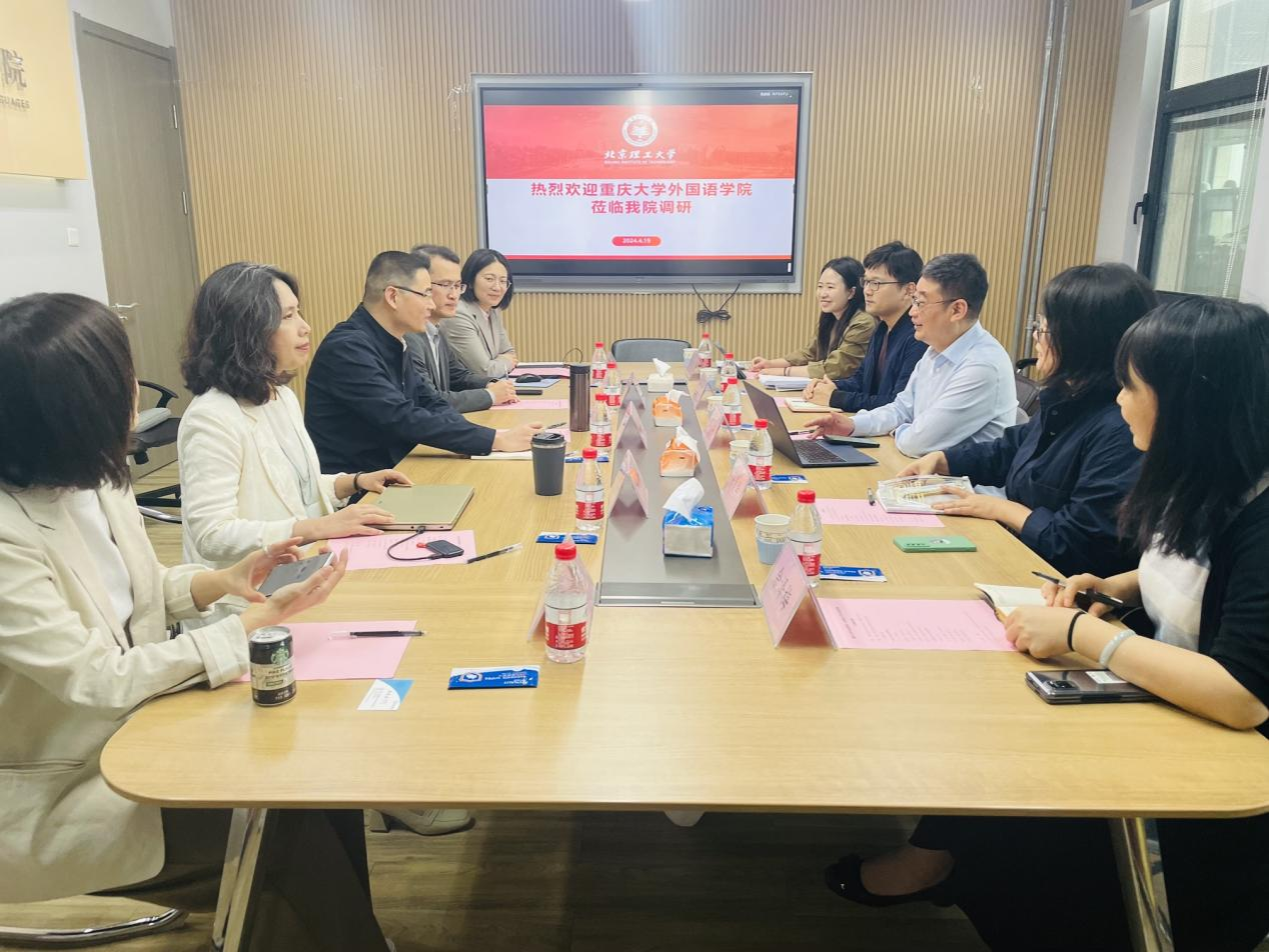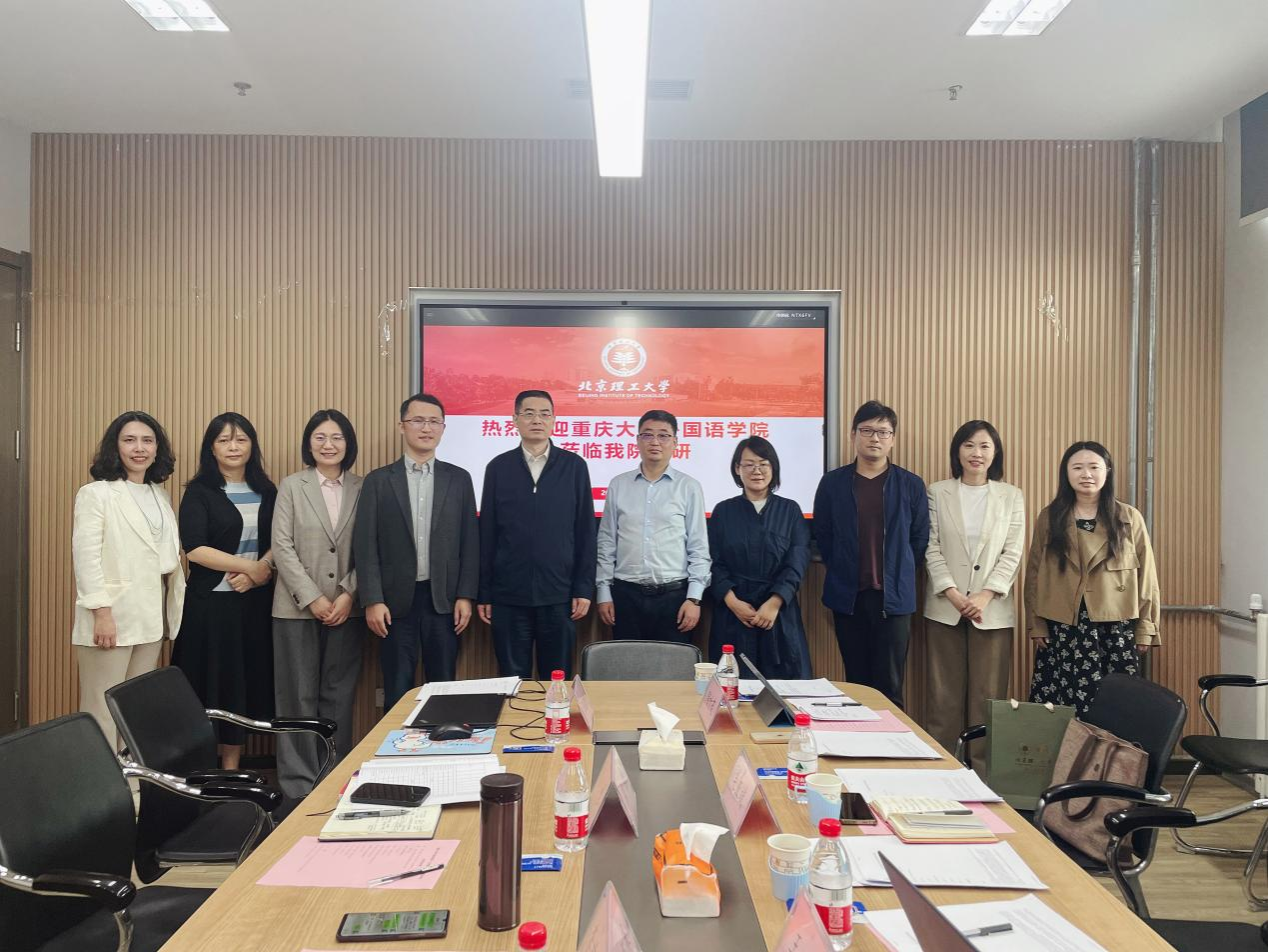 院长李京廉教授、副院长张勇副教授,以及英语系副主任吴霜副教授、日语系主任张元卉副教授、德语系副主任汪亚利副教授热情接待调研团队,并举行了座谈会。李京廉院长认为两校同属卓越大学联盟高校成员,面临的挑战与机遇具有诸多共性,期待能够加强双方的交流。会上,双方就新文科背景下英语、日语和德语本科专业培养方案的制定与改革,以及英日德一流本科专业建设进行了深入探讨。双方就培养方案的专业特色凝练、课程体系创新、教学质量提升、课程思政建设以及学生科研能力培养等方面展开了广泛交流。王江副院长表示,北京理工大学在学科建设与改革方面的积极探索以及与数字人文的深度融合为我院提供了宝贵的启示和借鉴,期待未来在课程改革、语言测试以及服务国家西部陆海新通道建设等领域开展更深入的交流合作。