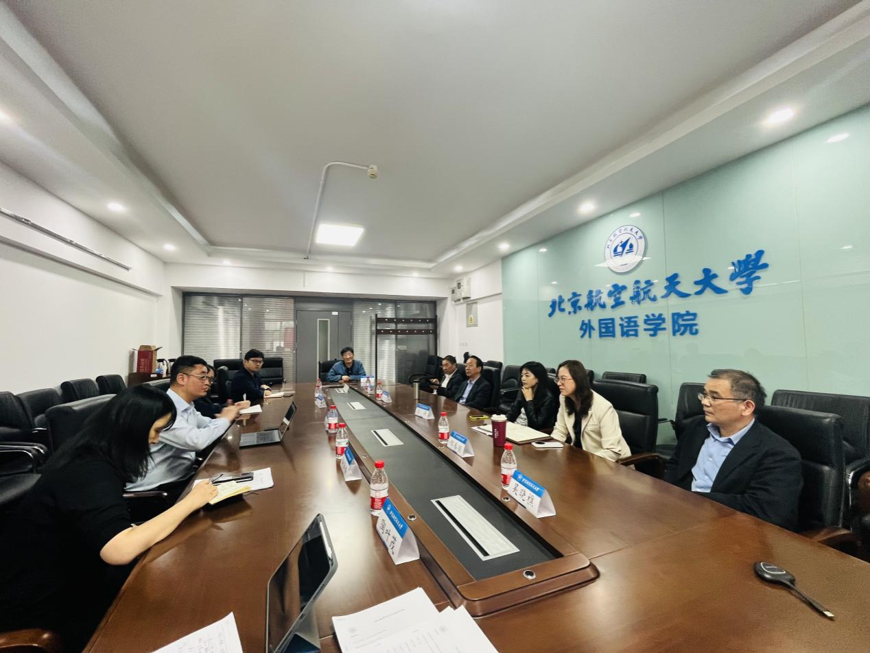 院长梁茂成教授、副院长邢春丽副教授,翻译系文军教授,英语文学系田俊武教授,德语系主任吴晓樵教授,语言科学与工程系主任徐涛副教授参加调研座谈会。梁茂成院长对调研团队的到来表示热烈欢迎,并介绍了北京航空航天大学漫蛙