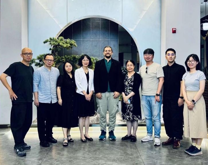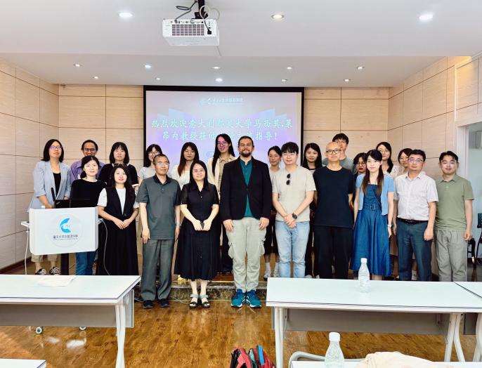 马西莫·莱昂内教授与学院党委书记欧玲(左四)等合影
