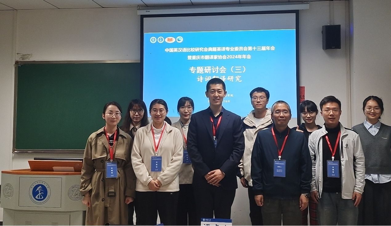 中国英汉语比较研究会典籍英译专业委员会第十三届年会暨重庆市翻译家协会2024年年会于2024年11月16日至17日在西南大学成功举办。在本次年会上,我院师生展现出对典籍英译研究的极高热情,共有李永毅、游振声、路斯琪、邹远鹏和陶叶茂等5位教师以及14位硕博士研究生参与,他们不仅在会议中分享研究,还深入参与研讨会的评点工作,展现了学院在典籍翻译领域的学术实力和研究活力。