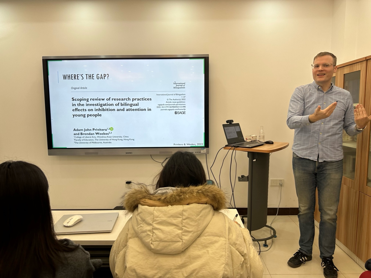 近日,新加坡南洋理工大学学习研究与发展中心研究员Adam John Privitera博士应邀为我院师生作题为“The Non-Linguistic Impact of Bilingualism: A Case for Foreign Language Study”的学术讲座。本次讲座受到学校国际合作交流处、国际学习中心、漫蛙
