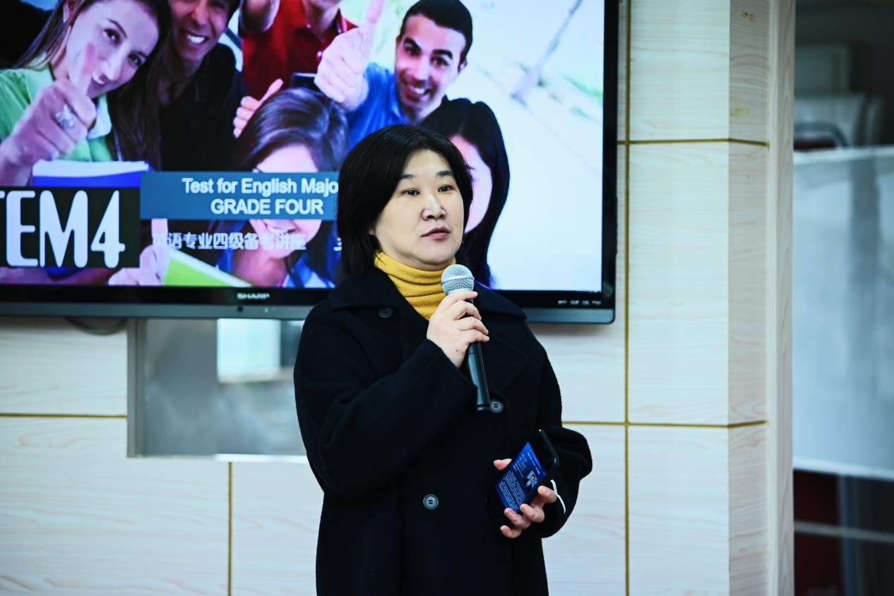 本次讲座以提高英语学生英语语言综合素质为目标,贯穿课程思政要求,聚焦英语专业四级(TEM4),解读考纲及考试要求。赵教授结合近三年的八级考试真题,分析典型题型,讲解解题技巧,并推荐了短期备考策略,同时启发学生构建稳定的长期英语学习策略。