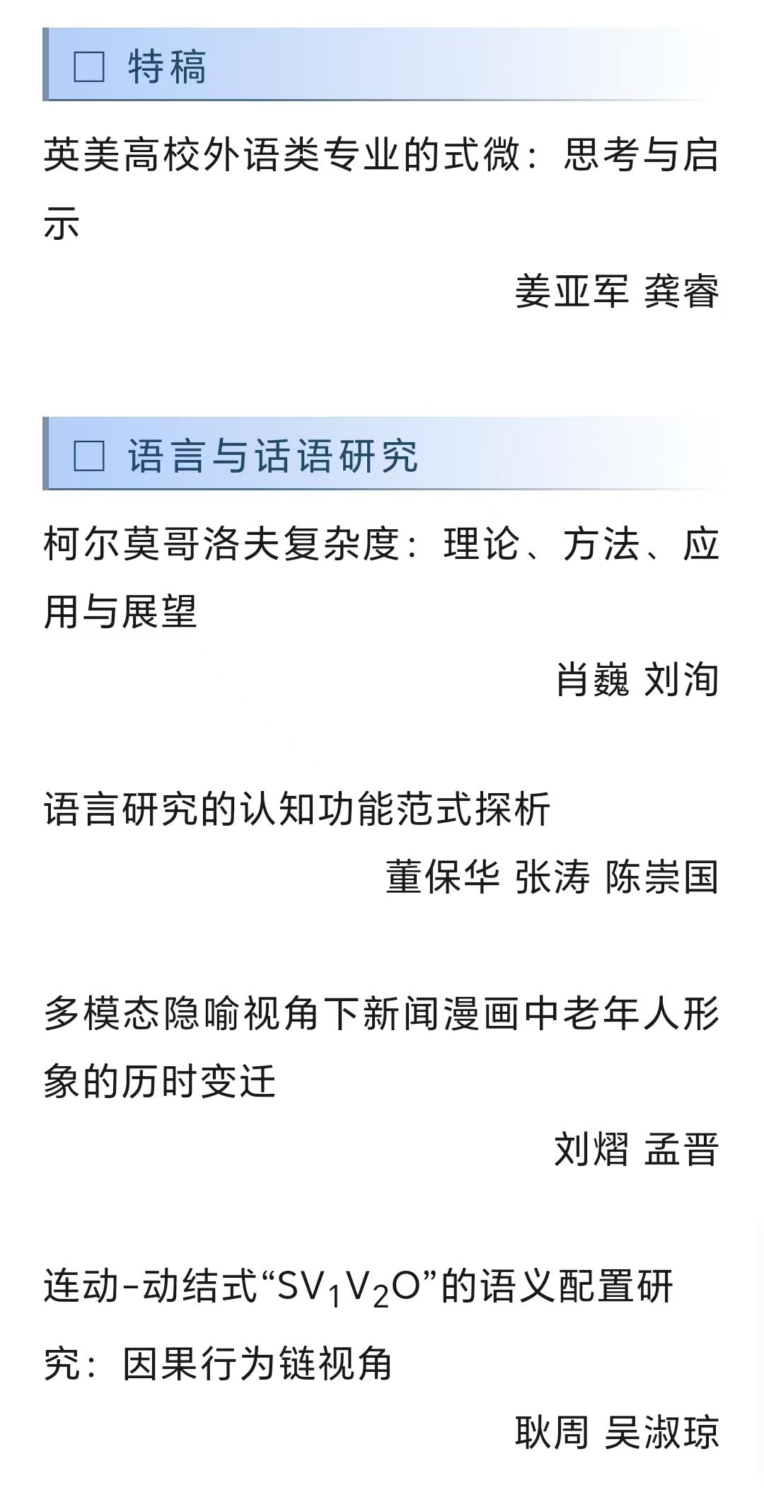 1. 肖巍, 刘洵. (2025). 柯尔莫哥洛夫复杂度:理论、方法、应用与展望. 外国语文, (2), 18-30. [CSSCI]