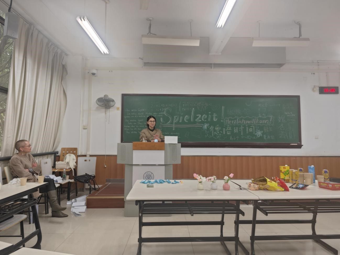 学生社团德语学社在德语系的指导和支持下,于2025年3月30日14时在综合楼DZ215教室开展了主题为“Spielzeit/德语时间”的“德语角”系列活动。本次活动由共青团漫蛙