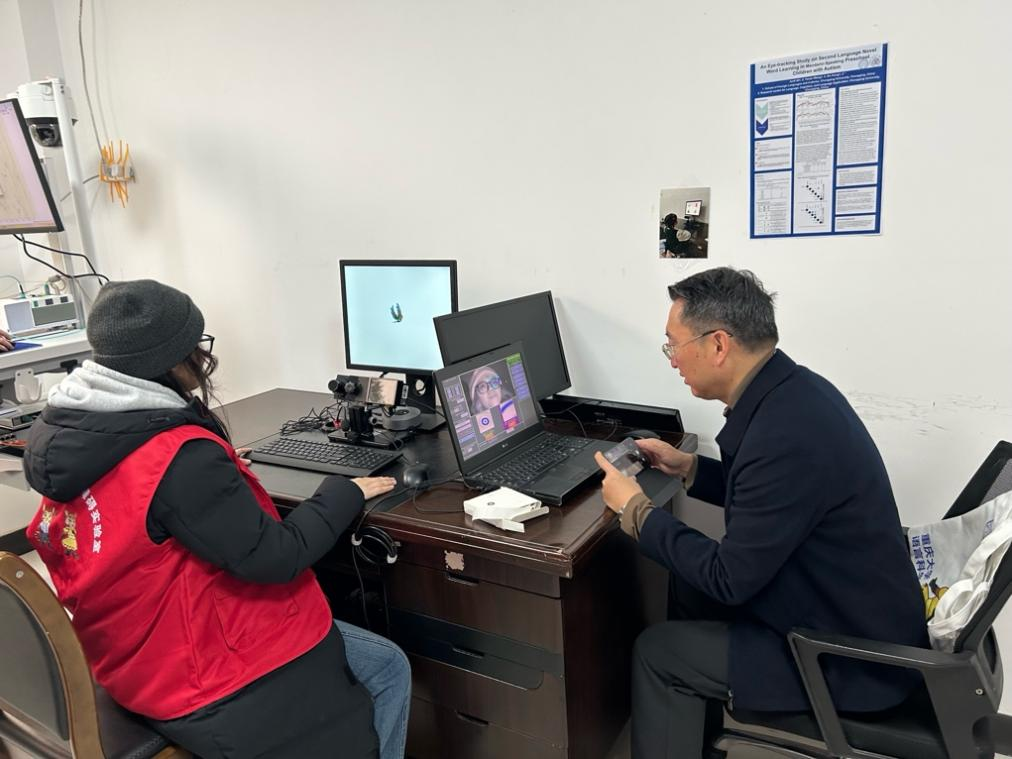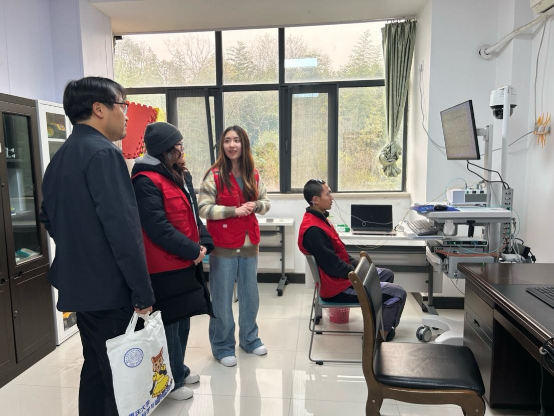 语言认知及语言应用研究基地调研。考察团重点走访康鑫教授团队指导的语言科学与障碍实验室(微信公众号:CQU语言科学与障碍),沉浸式体验语言认知领域前沿技术。