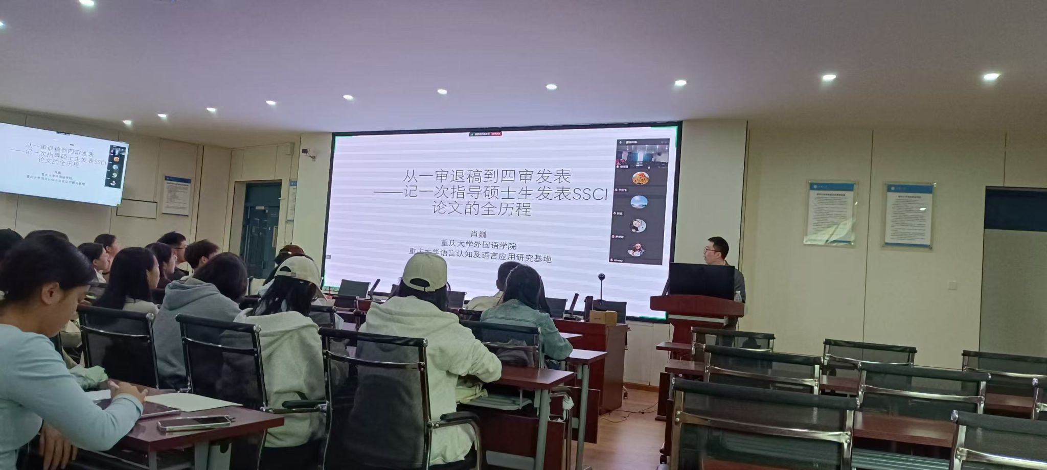博士生导师、语言认知及语言应用研究基地专职研究员肖巍教授在西华大学作了讲座“从一审退稿到四审发表——记一次指导硕士生发表SSCI论文的全历程”。讲座由漫蛙