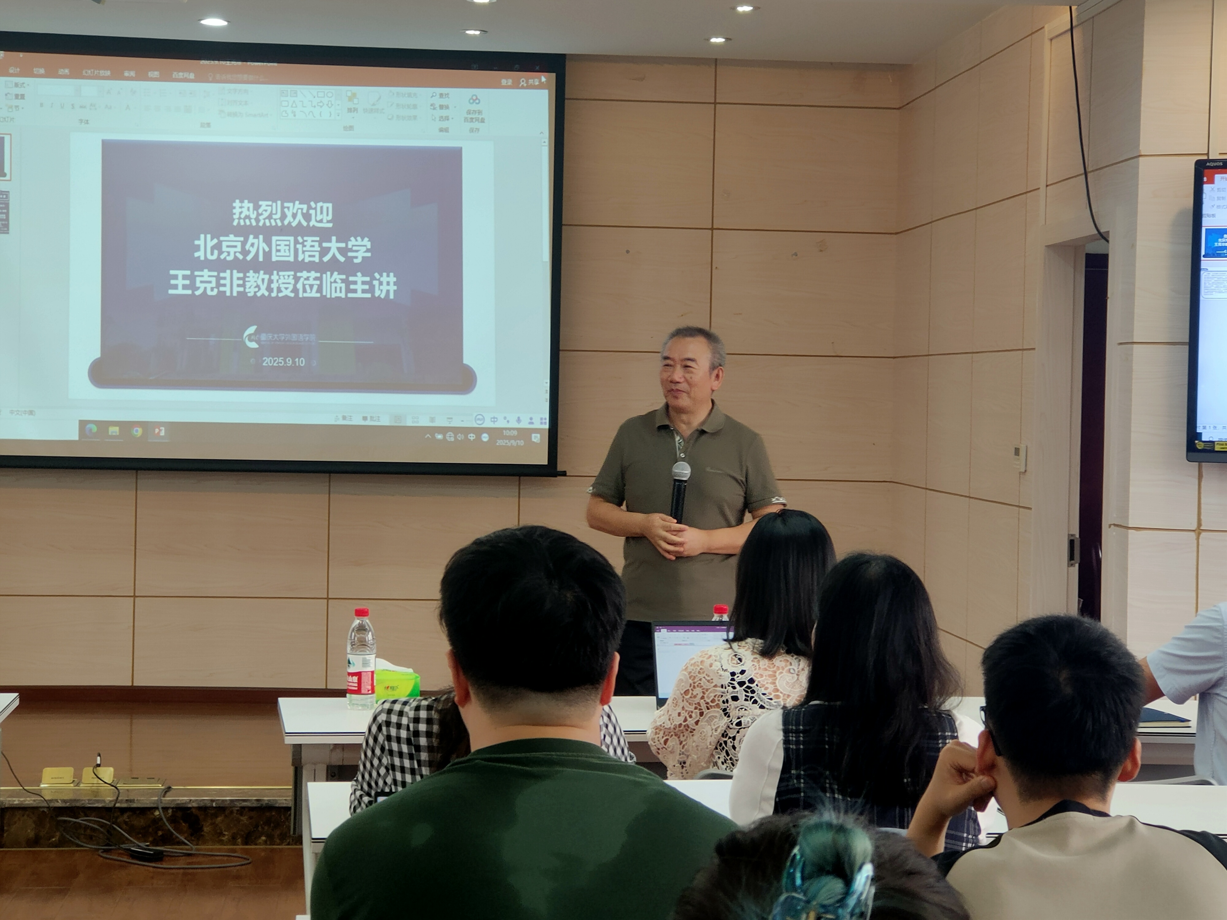 2025年9月10日上午,北京外国语大学讲席教授、《外语教学与研究》荣誉主编王克非教授,应邀在我校漫蛙