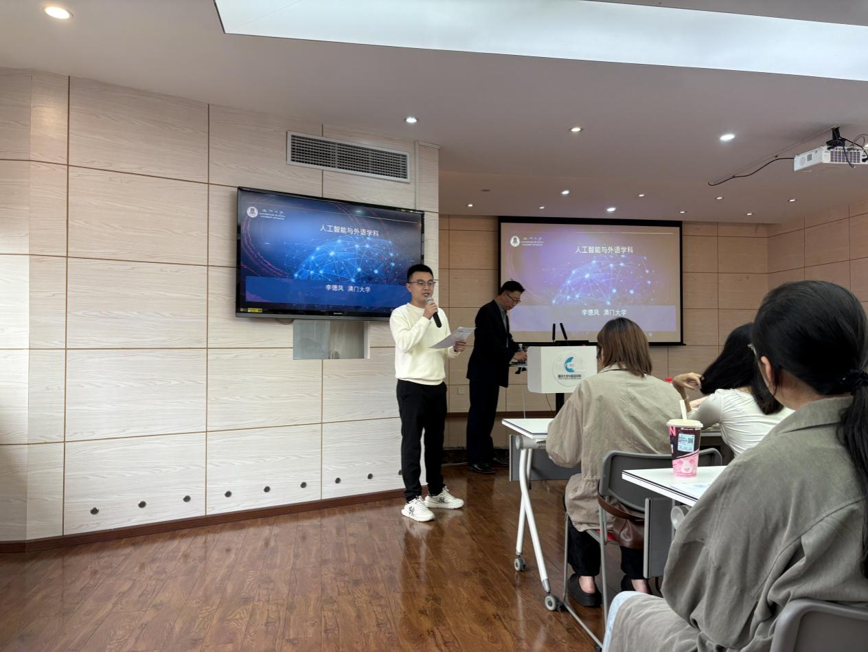 成功举办“人工智能与外语学科”主题讲座,特邀欧洲科学院院士、澳门大学李德凤教授担任主讲嘉宾。讲座由学院曹洪文教授主持,现场座无虚席,反响热烈。