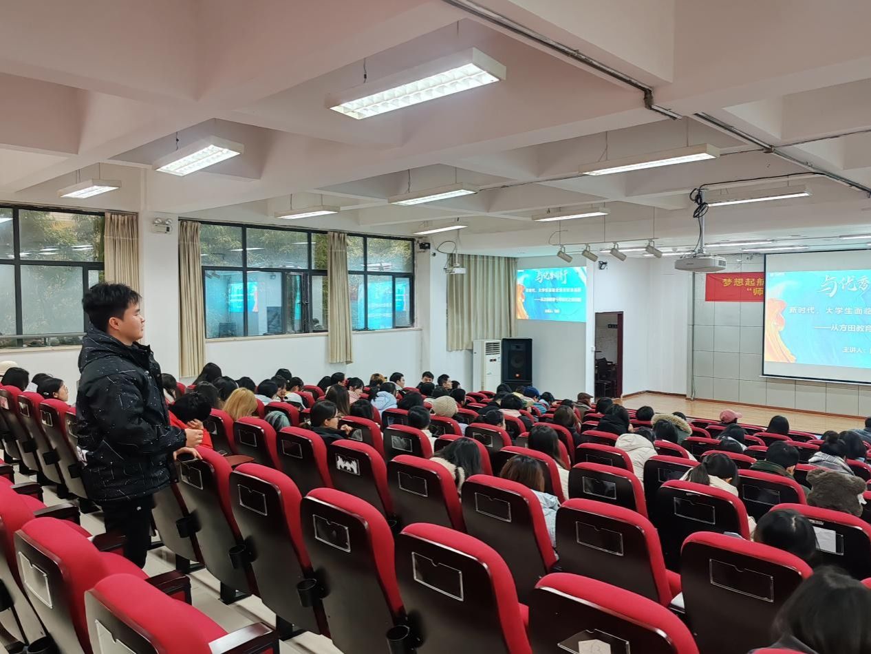 多功能厅,开展题为“新时代,大学生面临全新的职场挑战——从方田教育十年成长之路谈起”的专题讲座。本次讲座由漫蛙