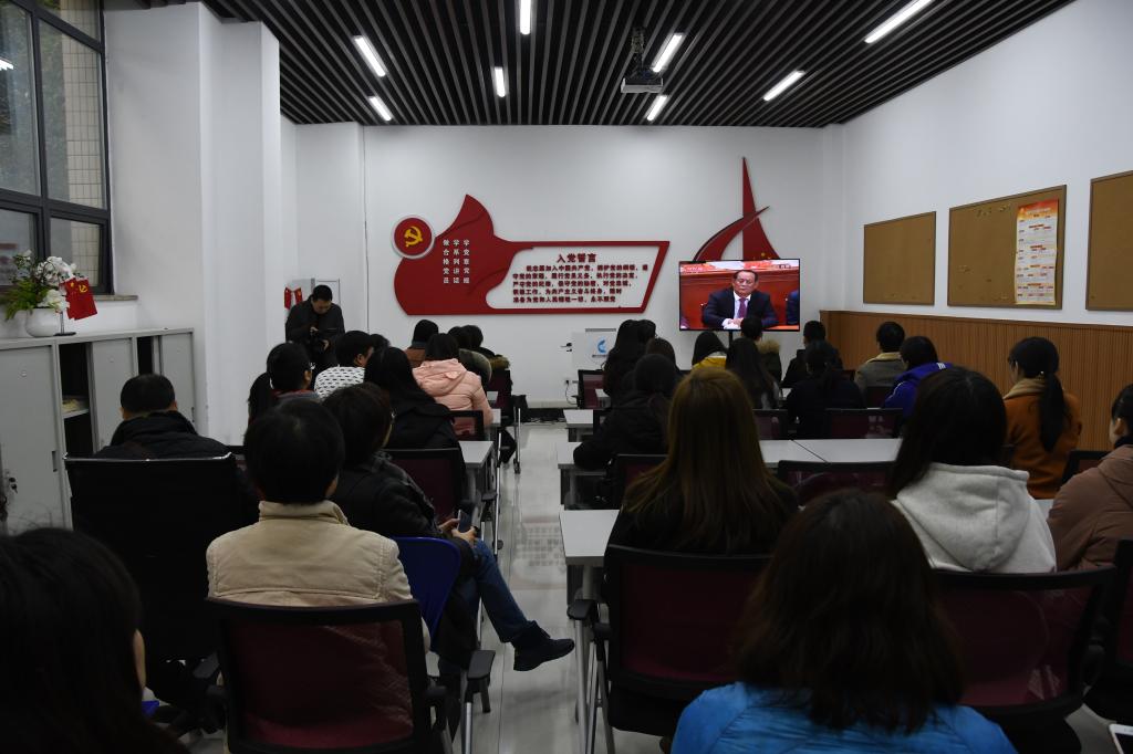 党委组织师生集体观看了庆祝改革开放四十周年大会现场直播,师生干部对习近平总书记重要讲话反响热烈。观影活动由学院党委副书记何建华主持,行政办公室、实验室、学生办公室全体教师、学生党员代表及入党积极分子代表等参加了观影活动。
