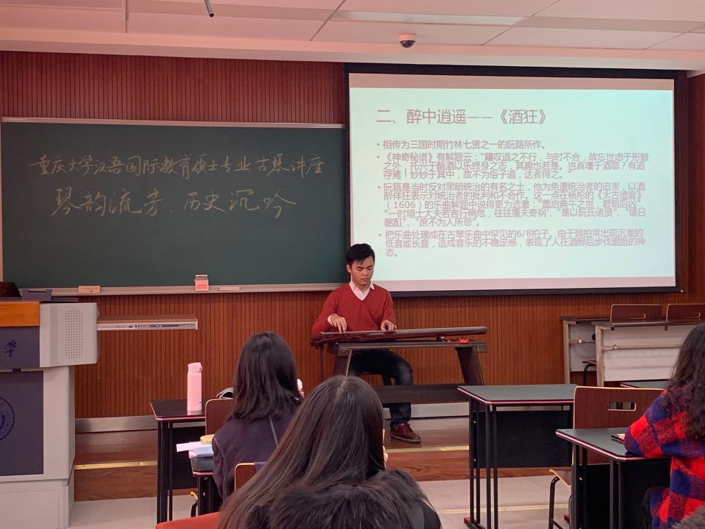11月22日,由我院汉语国际教育专业主办的两场传统文化讲座——古琴系列于虎溪校区顺利举行。为促进汉语国际教育专业学生深耕更丰富的传统文化,此次古琴讲座有幸邀请到八荒琴院创始人李程先生莅临现场,带大家一同走入中国传统乐器古琴的绝伦世界。