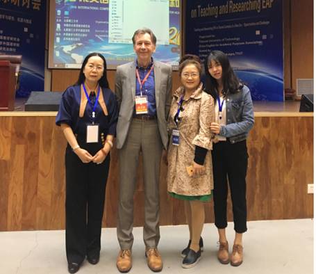 承办,高等教育出版社、外语教学与研究出版社协办,汇集了张军、黄国文、蔡基刚、Ian Bruce、Charlene Polio、Michael Barlow等260多名国内外专家。我校黄萍、刘丽英、蒋婷、邹远鹏、段丽萍、杨节等老师和研究生代表刘冰、杨银花、傅小瑜等积极参与到本次学术会议当中,在各分论坛进行了论文宣读和报告,展现我校学术英语教学研究与实践的创新性成果。