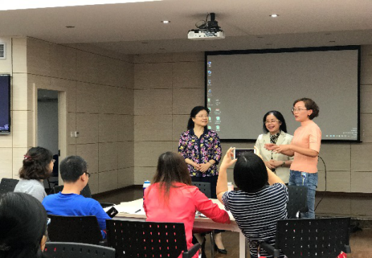 女性教师多的特点,徐锦芬教授首先从个人家庭主妇身份讲起,分享了如何处理好家庭、教学和科研之间关系的成功经历。然后梳理了从语言教学中师生关系、教师与教材,课堂环境的构建、教学方法、有效教学的特征、优秀教师的特征到教学评估、第二课堂及“互联网+”时代的学习等大学英语教学中所涉及的热门话题,并进一步就可以开展研究的方向及须要深入了解的理论框架做了详尽的介绍,同时徐教授还以她近十余年来发表的60余篇SSCI、CSSCI高水平论文为例,强调大学英语教学及研究本身就是每一个大学英语教师的事业,老师们要有培养敏锐的研究视角、打下扎实的教学实践和理论研究基础。第一场讲座之后,漫蛙