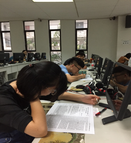 14日下午16:00整,阅读大赛在综合楼语言实验室举行,170名重大学子参与此次大赛。一个小时的比赛过程中,每位参赛选手都认真思考,努力答题,发挥自己的最佳水平。
