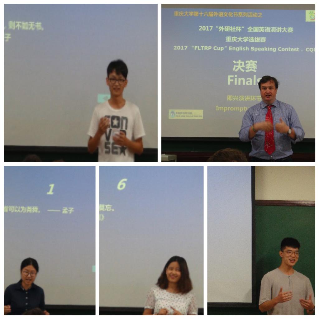 紧锣密鼓的进行。学院为顺利开展此次演讲比赛,鼓励同学们积极参与,踊跃报名,经过初赛的筛选,27名选手进入半决赛,经过激烈的角逐,最终12名选手进入决赛。比赛现场气氛热烈,演讲内容主题突出,参赛选手风格鲜明,精彩纷呈。最终,来自土木学院的党大智同学和来自软件学院的魏来同学获得特等奖,向鹏,吴昭慧等四位同学荣获一等奖,唐藜予等六名同学获得二等奖,王盛世等八名同学获得三等奖。演讲大赛由Dr. Pearson, Jordan, 熊菲老师及王旭老师等八位老师组成专业的评审团队参与评审,体现了公开、公平、公正的原则。