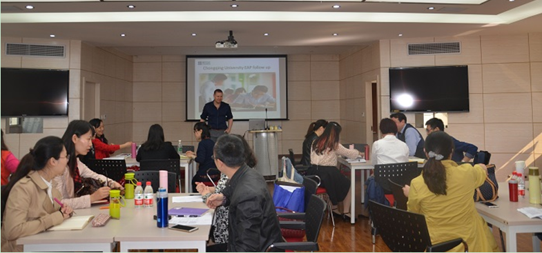 及英国总领事馆文化教育处合作举办的学术英语(EAP)教师发展项目跟进培训圆满结束。此次培训是2016年11月EAP教师发展项目的后续跟进环节,旨在让受训学员在总结反馈第一阶段培训培训效果,加深受训教师对EAP的理解,促进EAP课程建设和教学实践。