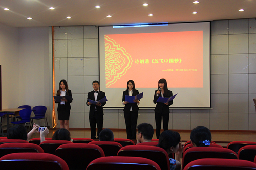 整个竞赛时长二十分钟,竞赛结束后,后台工作人员立即开始统计成绩。在此期间,于此次“两学一做”学习教育系列活动中表现优异的党支部也进行了汇报演出。两学一做是今年组织建设的重中之重,我党党委高度重视,在学生支部中开展了丰富多彩的活动。其中本科生2012级党支部开展了“中国梦”杯羽毛球赛,2013级本科支部开展了“我爱中华”红歌赛,2014、2015级本科生支部开展了诗歌朗诵比赛,研究生学术支部开展了读书活动,汉语国际教育研究生支部开展了写作比赛,翻译硕士支部开展了观看红色电影“杨善洲”影评比赛等。2013级本科生党支部为大家献上了歌曲《红旗飘飘》,其中还穿插了别出心裁的校园情景剧,让人耳目一新。2014和2015级本科生党支部则为大家带来了配乐诗朗诵《放飞中国梦》,四位表演者妆容精致,身着正装,配着恰到好处的音乐,情绪激昂处铿锵有力,细语柔情时温柔婉转,赢得观众的阵阵掌声。