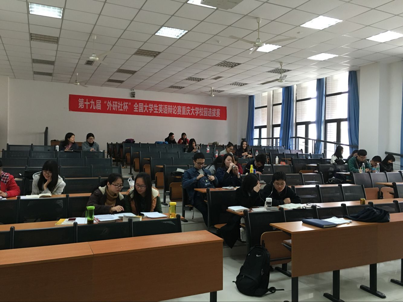 本场比赛为此次校园选拔赛的初赛,共有64支队伍共百余名选手参赛,四个会场同时进行。抽签完毕的选手在DYC207统一查看辩题。10分钟的准备时间过后,选手们各自进入会场进行比赛。此次校园选拔赛采取积分赛制。初赛共进行1轮比赛,每场4队共8人进行辩论,分数按照每队两名选手得分相加,随机分组,然后确定晋级人数。