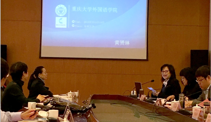 做了发言。黄院长首先从学科建设、专业建设、科学研究、教学改革、队伍建设等方面介绍了我院“十二五”规划的落实情况,着重分享了我院在英语专业培养方案改革及专业人才培养方面的经验及取得的成果。随后介绍了我院“十三五”规划的建设思路和编制进度。