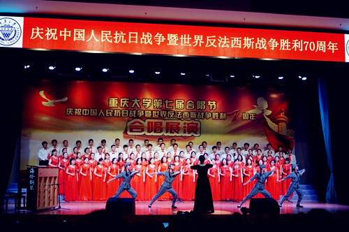 第七届合唱节“庆祝中国人民抗日战争胜利暨世界反法西斯战争胜利70周年”合唱展演活动,并最终在比赛中荣获全校三等奖。