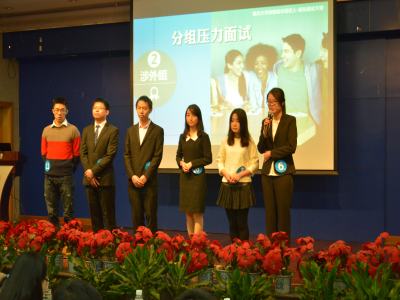 B区第二综合楼举行,整个赛程从上午9点开始持续到下午3点结束。面试初赛邀请到的评委有仲量联行(外企)重庆公司人力资源总监;长安福特汽车有限公司(合资)人力资源经理以及中电投远达环保工程有限公司(上市公司)国际合作部经理。另外,来自于外语学院研究生公共英语系的黄萍教授,向朝红副教授及李雁老师参与协作初赛的全过程。面试初赛由三位专业的评委对选手在群面及单面环节的表现分别进行考量与评分,三位英语老师不介入考评,体现了比赛的真实性,公正性与专业性。本次英语面试不仅需要面试者有较好的英文口头交际能力,还对逻辑思维能力和沟通协调能力等提出了更高的要求。虽然第一次参加这样的英文面试,涉外组面试者的表现却丝毫不逊色于中文组。三位评委表示,选手们的表现可圈可点,在模拟面试中表现出了真正求职者的姿态,希望选手们能够将比赛中学到的经验运用到日后的实际招聘中。比赛结束之后三位评委还与三位老师进行了交流,她们传递的用人单位对人才要求的信息为我校英语教学改革提供了许多宝贵的启示。经过初赛后,在报名参加比赛的76名选手中,最终筛选出6位优秀选手进入决赛。