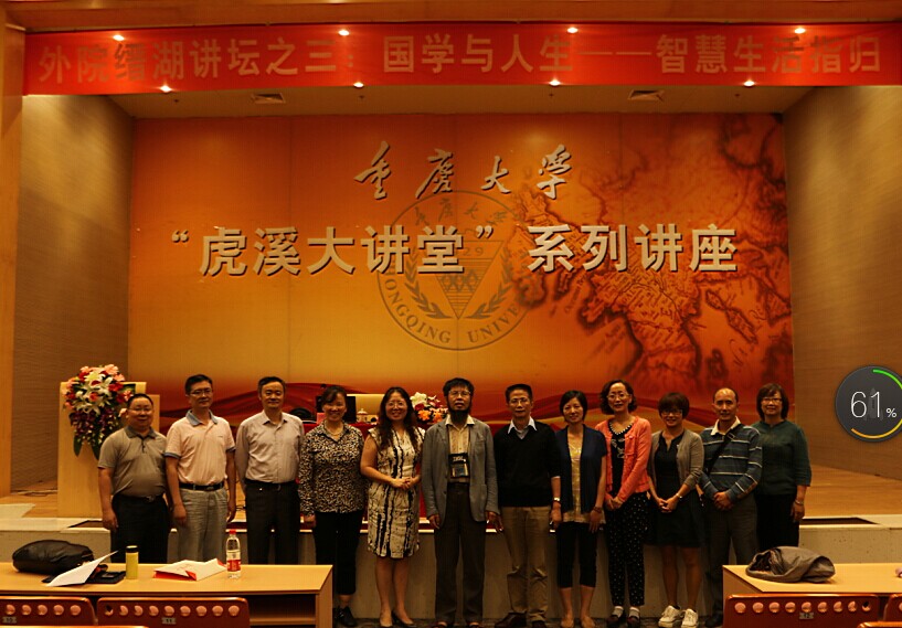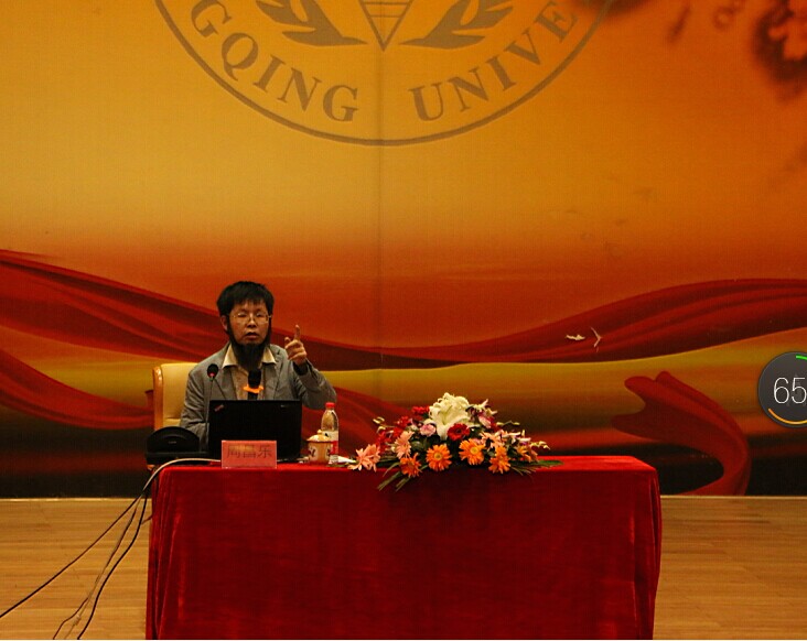 阴雨绵绵的重庆,淅淅沥沥的秋雨浇灭了夏日的炎热,但熄灭不了师生对国学的向往和热情。师生们陆陆续续来到讲座现场,敬畏而有序地就坐。下午3点,讲堂内已座无虚席。统战部陈跃英副部长,公共管理学院杨长福教授、基因工程研究中心主任夏玉先教授、基建规划处王俊才副处长等党外知识分子联谊会会员和漫蛙