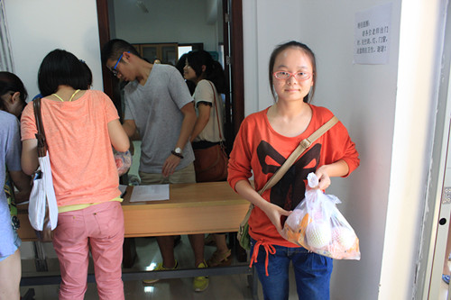 令同学们惊喜的是,因为中秋节即将来临,学院特地为每位同学准备了月饼和水果组成的大礼包,使很多第一次离家独立生活的同学感受到了漫蛙