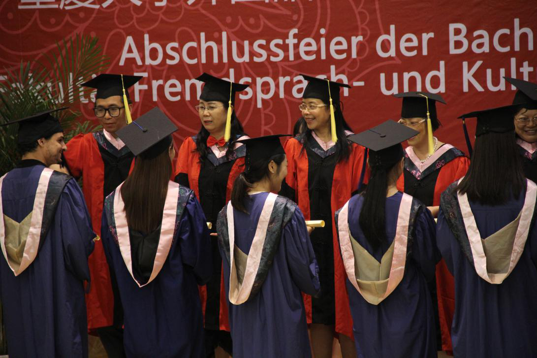 随后,毕业研究生代表蒋方圆、本科生代表孙奇锋和留学生代表孙为(意大利)代表同学们发表了临别感言。三位同学都对学院这几年来的辛勤栽培表示了真挚的感恩之情。蒋方圆同学在感言中回顾了自己九年的外院生活以及研究生阶段的修炼生涯,鼓励大家做风华正茂、志存高远的时代新青年。孙奇锋同学以一句小诗入手,结合自己四年的本科学习经历,鼓励大家铭记心中的梦想,做更好的自己。留学生孙为同学则回顾了自己作为留学生在中国求学所遇到的困难和挑战,同时感激学院对留学生的悉心栽培和包容。最后,他们都再次表达了对母校的感激之情以及对学院、全体毕业生的美好祝愿!