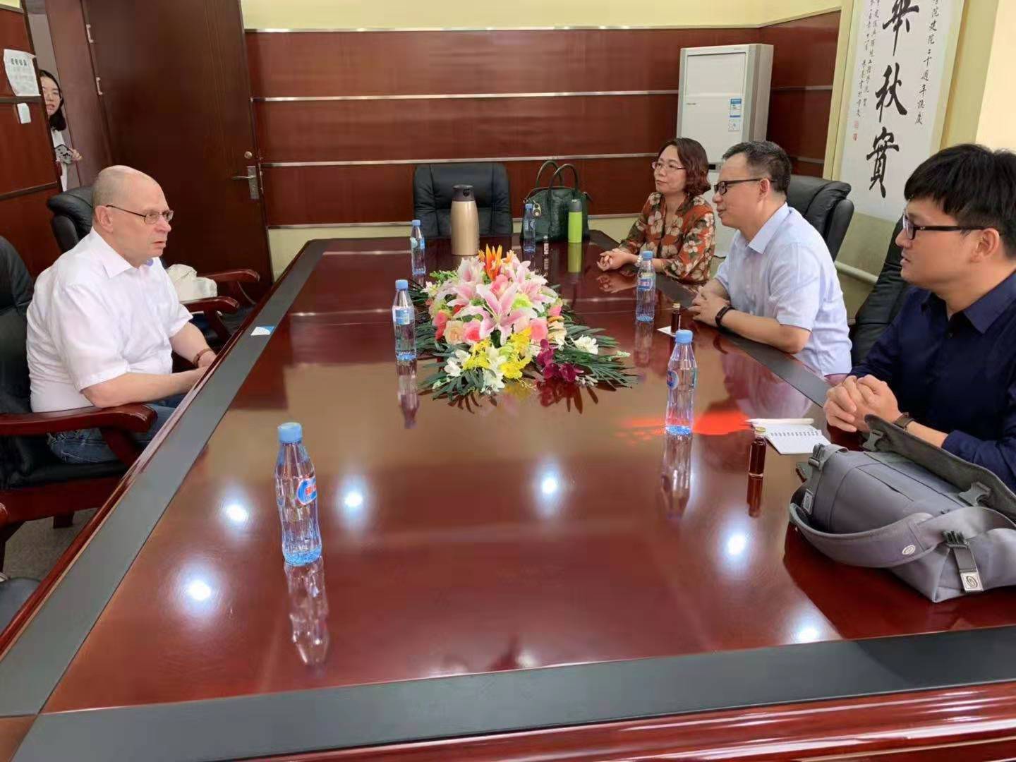 副院长杨小虎、德语系主任薛松和副主任毛亚斌接待了德国客人。