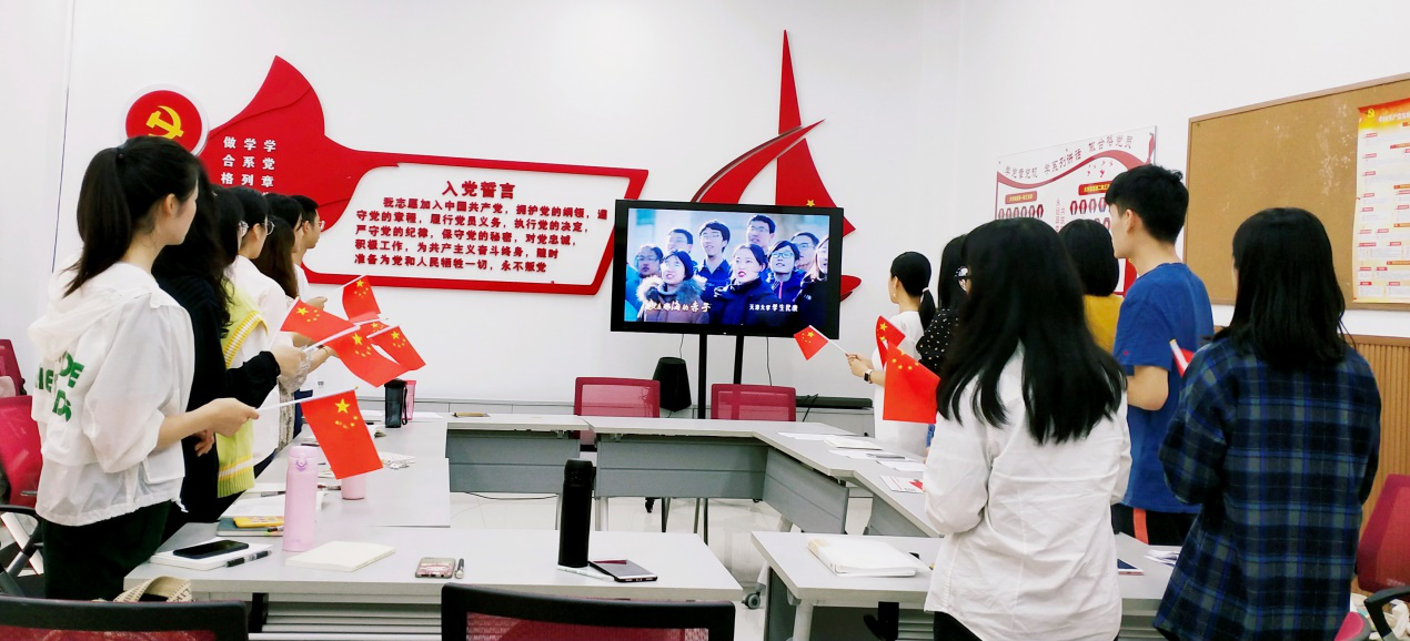会议最后,在党支部书记杜瑾老师的带领下,各同志齐声深情歌唱“我和我的祖国”。通过本次活动,各党员及入党积极分子纷纷表达了自己在这一刻的心情。“大声为祖国歌唱,这一刻我内心十分感动与骄傲。作为汉教人,更加坚定了我们肩上所承担的使命。我爱我的祖国。”