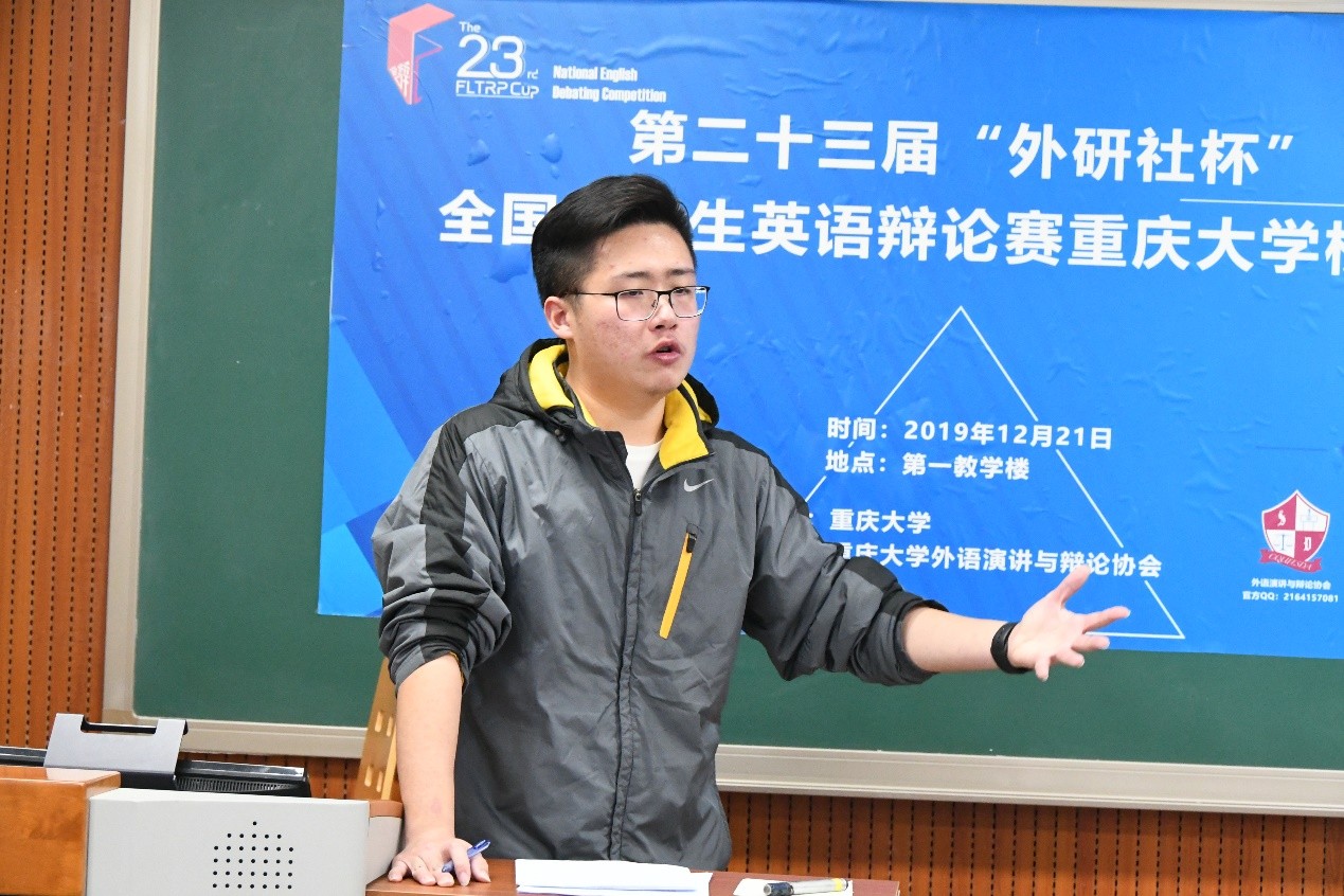 虎溪校区第一教学楼D1327-D1330教室顺利举办。本次大赛共吸引全校52支队伍参赛,分为初赛、复赛、决赛三场赛程,采用BP赛制(英国议会制),每轮4支辩论队出场,正反方分别由2支队伍构成,并分别发表开篇陈词和总结陈词,每支队伍都需要与其他几支队伍进行竞争,最后决出名次。