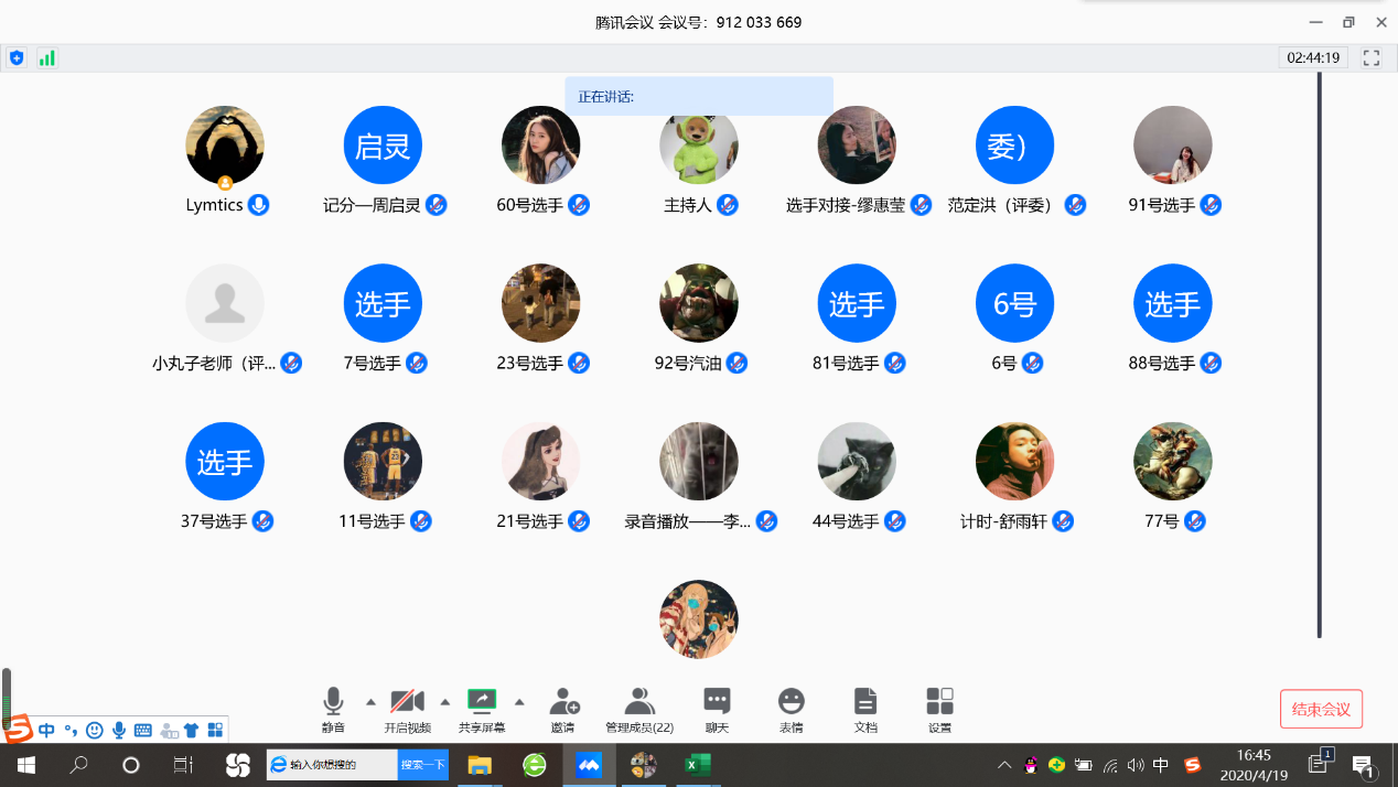校选赛于2020年4月18日14:00和2020年4月19日14:30在“腾讯会议”线上平台分别进行了初赛和决赛。本次校选赛由漫蛙