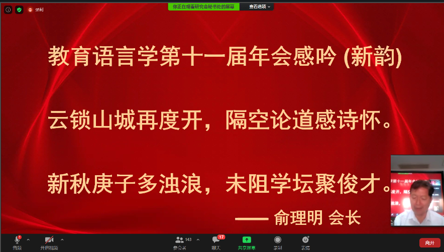 党政的高度重视和支持,来自国内外200余所高校及中小学的300多名专家学者、老师同学汇聚云端,围绕会议主题 ——“语言学视阈下的教育教学研究”进行了广泛深入的交流。