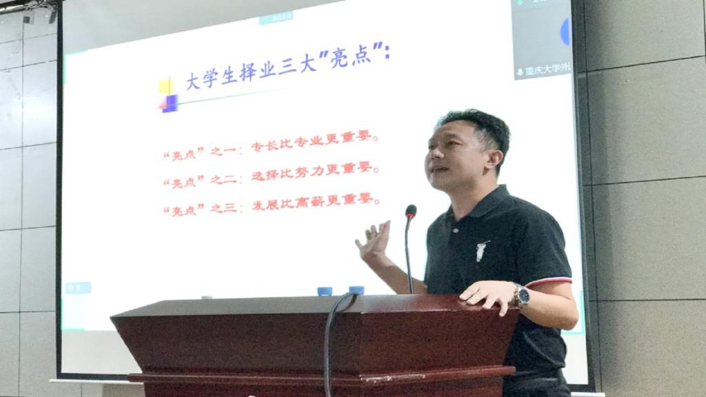 就业中心向章婷,研究生辅导员覃梦秋,特邀专家寿军、王麒凯,及漫蛙