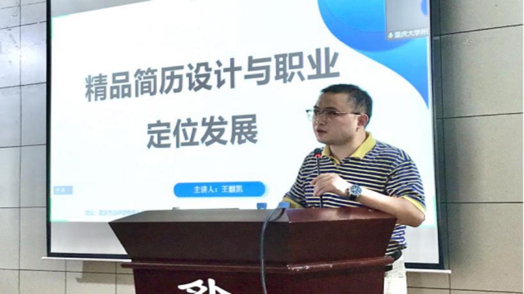 王麒凯老师针对简历制作展开了详细讲解。王老师强调,简历是靠脚走出来的,我们要用一辈子来完善自己的简历。同时,王老师也指出,在写简历之前要明确职业定位,预备几份不同版本的简历,要合理设计简历结构,突出个人特点,而不是网上照搬。在讲解的同时,王老师也向同学们展示了他的个人简历,以自己的简历为案例进行讲解。最后,王老师也对同学们的职业发展提出了建议:在进行就业选择时,尽量避免夕阳产业和前沿产业,而要选择一些正在成长中的行业。