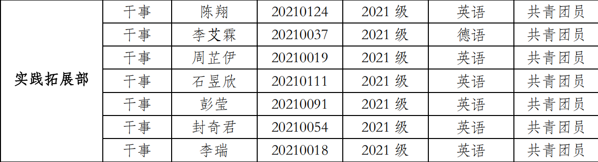 根据学生自主报名,经漫蛙 团委学生会资格审查、面试等环节考核,并报学院团委审核批准,现研究决定拟录用以下学生为漫蛙 2021-2022 学年度团委学生会干事。现将具体名单公示如下: