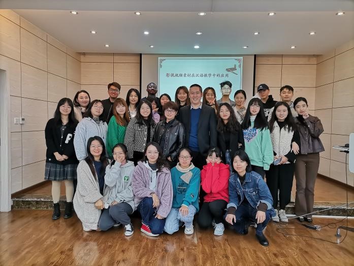 2021年10月27日9时,由前美国印第安纳国际学校中学部中文教师刘志刚主讲,副院长李小辉主持的“影视视频中的素材在汉语教学中的应用”工作坊在学院楼501会议室进行。汉语国际教育专业研究生参加了该工作坊。