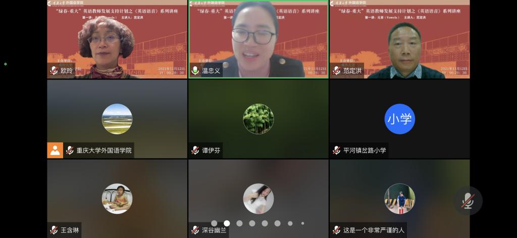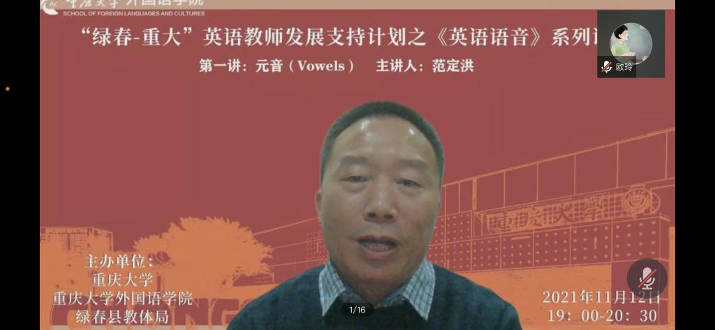 党委组织的“绿春-重大”英语教师发展支持计划系列讲座之“英语语音”的第一讲通过在线方式顺利举行,讲座由漫蛙
