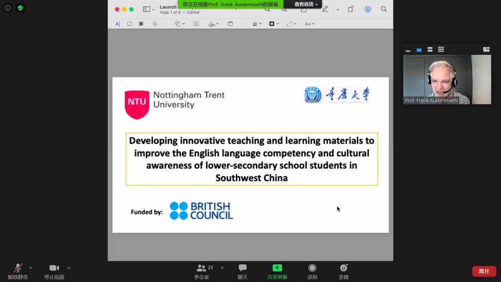 和英国诺丁汉伦特大学针对乡村中小学英语教学联合研发课程教学资源包,提升偏远地区中小学英语教育质量的项目将给与大力的关注和支持。潼南区政协副主席全冬,云南省绿春县副县长王辉分别介绍了所在区县的教育现状,向项目开发方和资助方表达了感谢,同时表示将推进区县教育相关部门,鼎力支持中小学英语教师开展教学研究与实践,提升当地的英语教学质量。