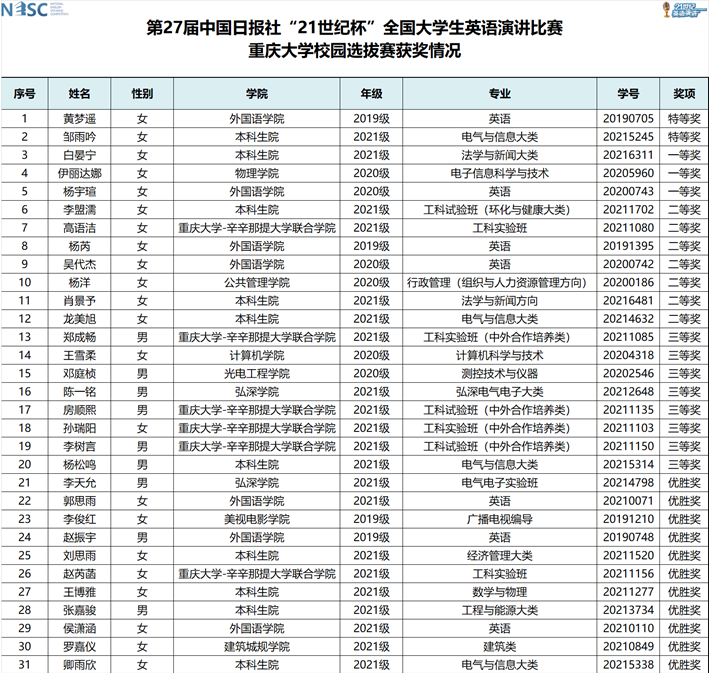 经过初选、决赛的精彩比拼,校赛最终评选出2名特等奖、3名一等奖、7名二等奖、8名三等奖、12名优胜奖。