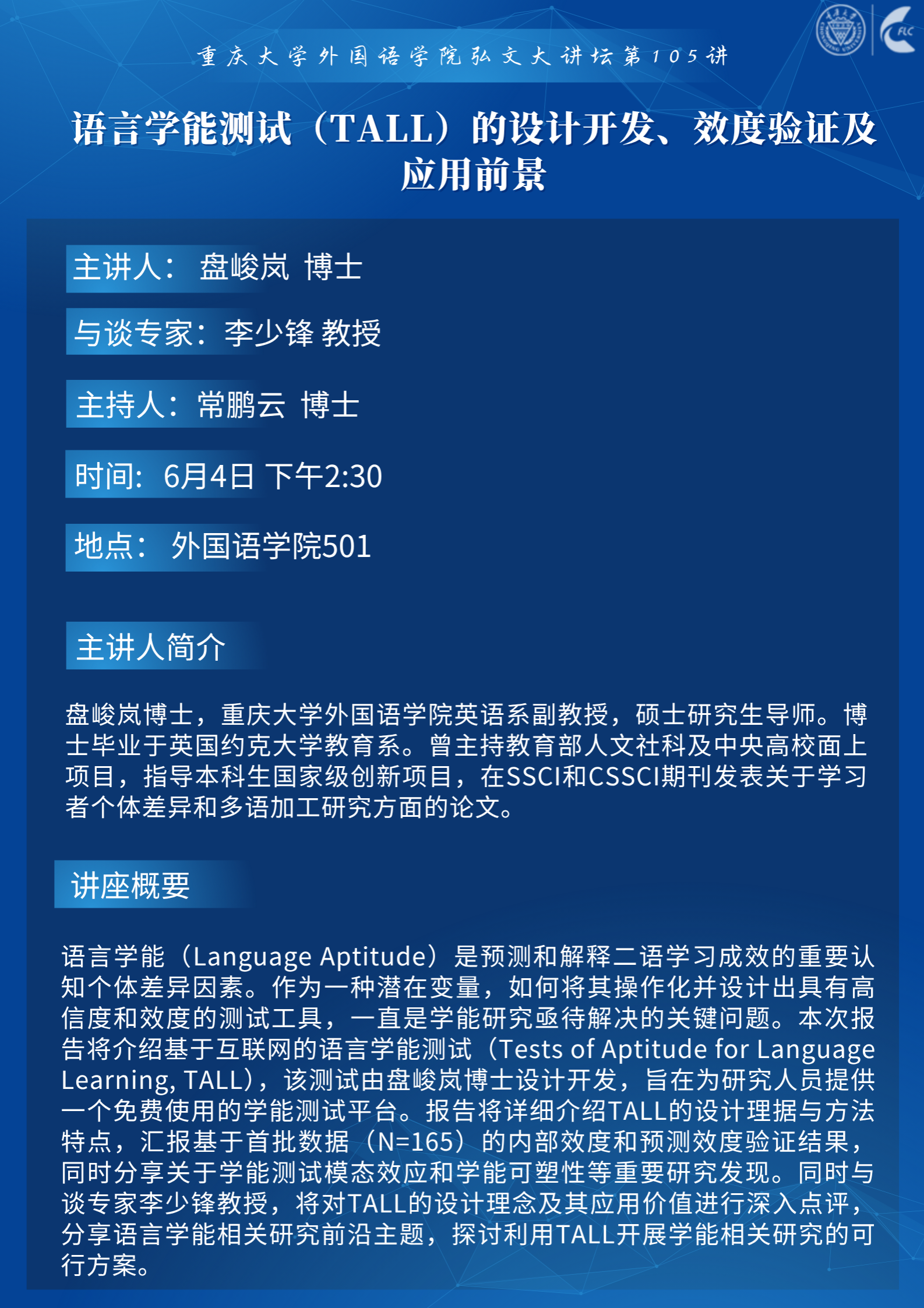 讲座|语言学能测试(TALL)的设计开发、效度验证及应用前景