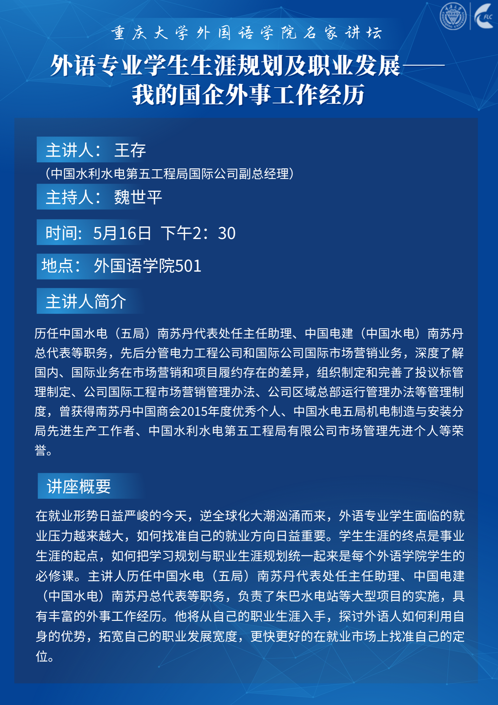 讲座|外语专业学生生涯规划及职业发展——我的国企外事工作经历
