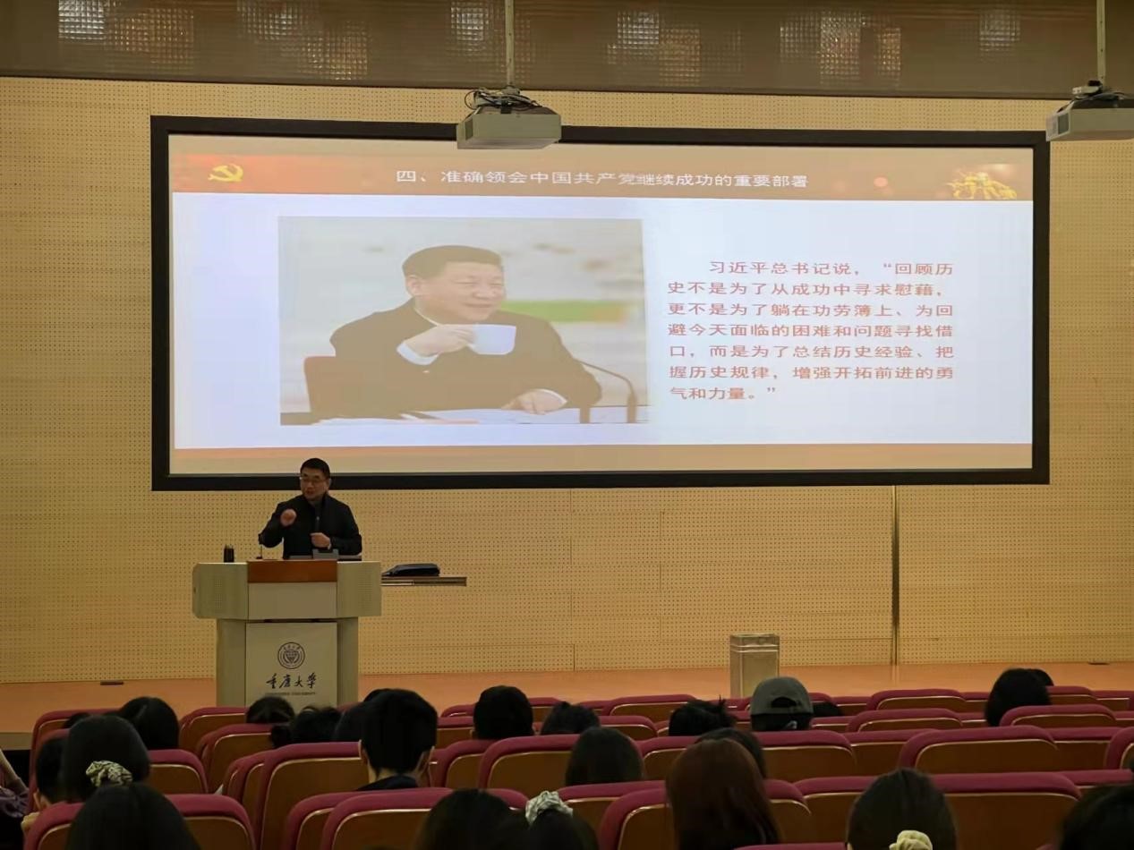 刘洪彪教授以《从党的百年奋斗史中汲取智慧和力量深入学习党的十九届六中全会精神》为题,从全面把握中国共产党百年奋斗的重大成就、正确理解中国共产党百年奋斗的历史意义、深刻领悟中国共产党百年奋斗的历史经验、准确领会中国共产党继续成功的重要部署这四个方面来阐述。刘洪彪教授向我们介绍了十九届六中全会《决议》与前两个“历史决议”相比的两个不同的特点:一是主要总结党的百年奋斗的重大成和历史经验;二是突出中国特色社会主义新时代这个重点。希望学员们学好党史这门必修课,加深对党的历史认识,端正入党动机,切实增强党性意识、提高政治素质,从波澜壮阔的百年党史中锤炼对党忠诚的政治品质。最后,刘洪彪教授还传递了对当代青年的殷切期望,告诫参训学员勿忘昨天的苦难辉煌,无愧今天的使命担当,不负明天的伟大梦想。