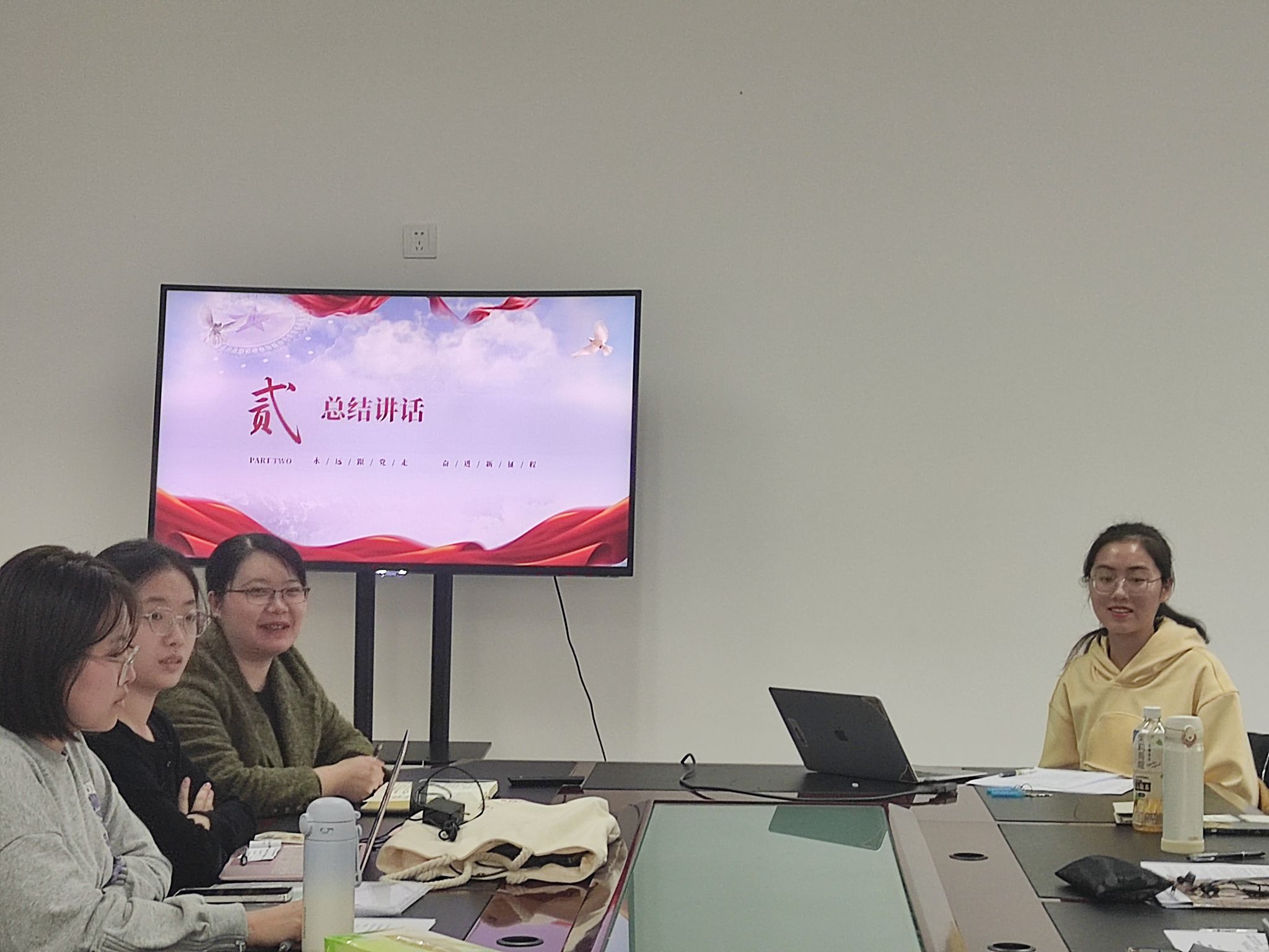 会议最后,刘培老师作了总结发言,她谈到,从思想上入党是一个任重而道远的过程,各位发展对象应加强对中国共产党精神谱系的系统学习,深度把握其内涵;要进一步增强党员身份意识,时刻警醒,在实践中践行理想信念;要坚持群众路线这一根本政治路线与组织路线,提高自身群众工作能力;要充分发挥迎难而上的斗争精神,敢想敢干,努力提升自身专业能力与学科素养,抓住时代机遇大有作为。